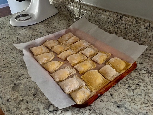 - Slice the dough into pieces, roll out piece and place on baking sheet